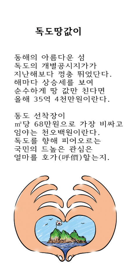 이전 기사보기 다음 기사보기 [시사카툰|천지풍경] 독도 땅값이 바로가기 복사하기 본문 글씨 줄이기 본문 글씨 키우기 스크롤 이동 상태바 [시사카툰|천지풍경] 독도 땅값이 천지풍경 입력 2014.08.12 17:55 기자명 천지일보 newscj@newscj.com 페이스북(으)로 기사보내기 트위터(으)로 기사보내기 카카오톡(으)로 기사보내기 텔레그램(으)로 기사보내기 URL복사(으)로 기사보내기 바로가기 기사스크랩하기 다른 공유 찾기 본문 글씨 줄이기 가 본문 글씨 키우기 이 기사를 공유합니다 페이스북(으)로 기사보내기 트위터(으)로 기사보내기 카카오톡(으)로 기사보내기 텔레그램(으)로 기사보내기 URL복사(으)로 기사보내기 닫기 글 정라곤 시인 | 그림 김진호 화백 천지일보는 24시간 여러분의 제보를 기다립니다. 천지일보 카톡 1644-7533 newscj@newscj.com 제보하기 천지일보 newscj@newscj.com 다른 기사 보기 관련기사 [시사카툰|천지풍경] 불현듯 잊고 지냈던 [시사카툰|천지풍경] 롯데의 ‘영원한 캡틴’ [시사카툰|천지풍경] 일찍 다가오는 추석처럼 [시사카툰|천지풍경] 오순도순 가족끼리 [시사카툰|천지풍경] 비정상의 금메달 [시사카툰|천지풍경] ‘나홀로족(族)’을 위한 [시사카툰|천지풍경] 아름다운 서울에서 [시사카툰|천지풍경] 경기 회복 낙관 못해 저작권자 © 천지일보 무단전재 및 재배포 금지 개의 댓글 삭제기준 회원로그인 작성자 비밀번호 댓글 내용입력 댓글 정렬 최신순 추천순 답글순 BEST댓글 BEST 댓글 답글과 추천수를 합산하여 자동으로 노출됩니다. 닫기 더보기 댓글삭제 삭제한 댓글은 다시 복구할 수 없습니다. 그래도 삭제하시겠습니까? 비밀번호 닫기 댓글수정 댓글 수정은 작성 후 1분내에만 가능합니다. 본문 / 400 비밀번호 닫기 내 댓글 모음 닫기