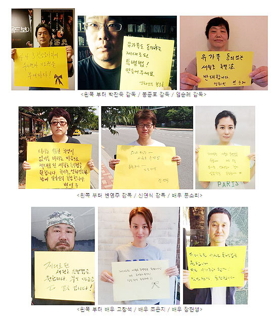 한국을 대표하는 감독 박찬욱, 봉준호, 임순례, 변영주, 신연식 감독이 세월호 특별법 제정 촉구 메시지를 작성해 인증샷을 올렸다.