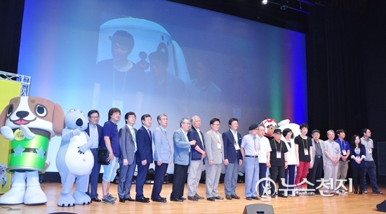 [천지일보=박혜옥 기자] 제17회 부천국제만화축제가 13일 한국만화박물관 상영관에서 ‘만화, 시대의 울림’을 주제로 개막한 가운데, 주요 내빈과 수상자들이 기념촬영을 하고 있다.