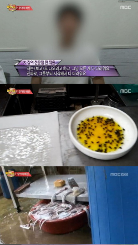 이날 공개된 장어집들의 위생 상태는 그야말로 충격이었다. 특히 TV에 소개된 후 대박 집이 된 한 장어집의 직원들은 가게의 실체를 폭로하며 고개를 내저었다.