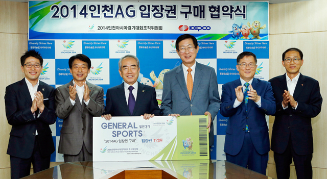 한전은 14일 인천아시아경기대회 조직위원회 사무실에서 ‘2014인천아시아경기대회’의 성공적인 개최를 위해 협약식을 체결하고 한전 인천본부 직원들의 자발적인 모금활동 및 회사의 지원을 통해 마련된 기금으로 1억 원 상당의 경기입장권을 구매하기로 약정했다.