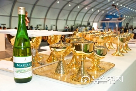 미사용 포도주는 1977년 출시 이래 마주앙 와인이 사용되고 있으며 이번 프란치스코 교황 방한 행사에서도 공식 와인으로 채택됐다. ‘마주앙’ 미사주는 해마다 8월에 수확한 포도로 축복 미사 후 별도로 생산하고 있으며 요한 바오로 2세 교황의 방한 행사에서도 마주앙이 공식 미사주로 쓰였다.