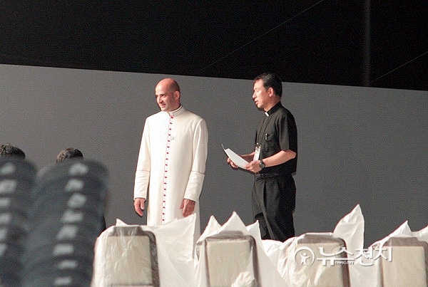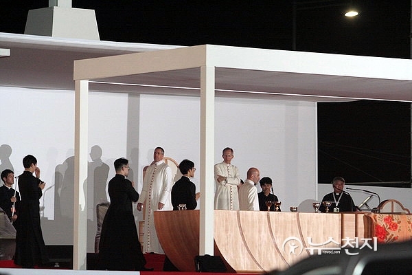 [천지일보=유용주 객원기자] 광복절이자 프란치스코 교황 시복식을 하루 앞둔 15일 밤 교황청 관계자들이 리허설을 진행하고 있다.