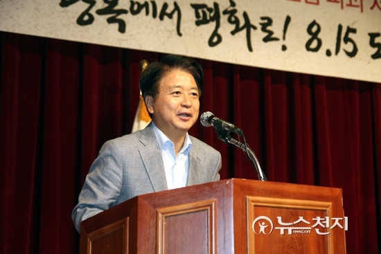 - [포토] 8.15 도보순례단 해단식서 인사말하는 최원식 의원