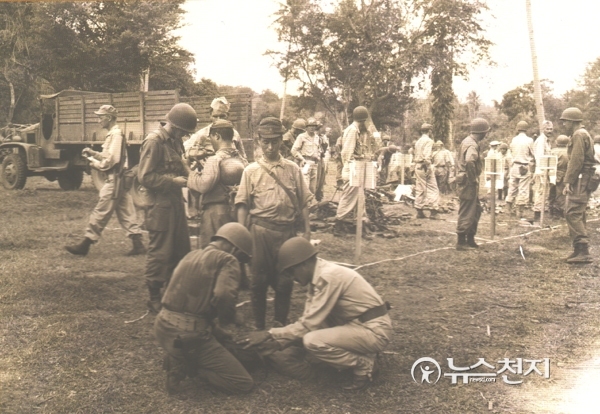 [천지일보=김현진 기자] 항복한 일본군의 소지품을 미군들이 검사 확인작업을 하고 있다.