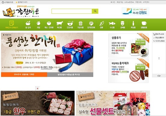 [천지일보 강원=김성규 기자] 강원도는 도내 중소기업의 온라인 판로개척을 위해 판매수수료 없이 무상으로 운영 중인 ‘강원우수상품 인터넷 쇼핑몰(강원마트, http://gwmart.kr)’에서 추석맞이 특판행사를 한다고 밝혔다.
