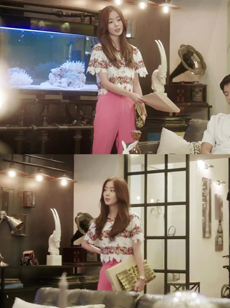 한선화가 드라마에 입고 나온 의상은 스타일난다의 크롭트 티셔츠로 화려한 플라워 프린트와 보일 듯 말 듯한 시스루가 포인트다.