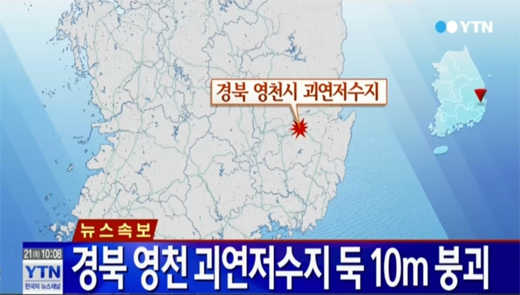 영천 괴연저수지 붕괴 소식에 네티즌들은 “다행히 인명피해는 없네” “경북 영천 괴연저수지, 빨리 복구되길” 등의 반응을 보였다.
