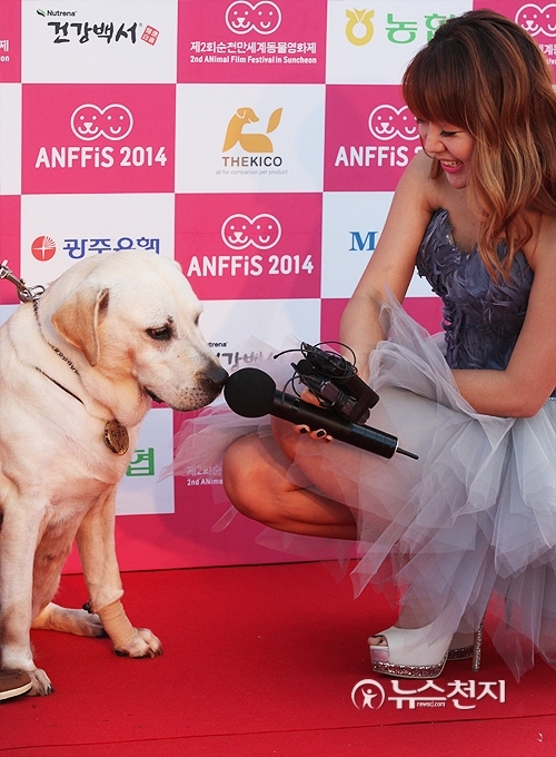 ▲ 21일 전남 순천시 순천만정원에서 진행된 제2회 순천만세계동물영화제에 영화에 출연해 인지도를 쌓은 달이가 레드카펫을 밟고 있다. ⓒ천지일보(뉴스천지)