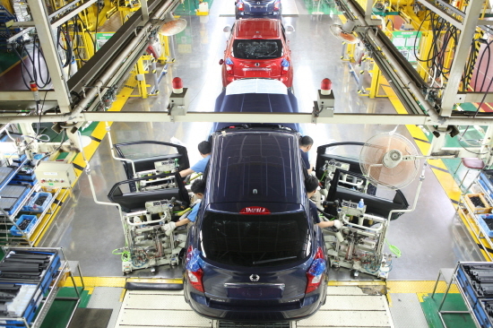 쌍용자동차 평택공장 조립1팀 안두헌 직장(세부라인 책임자)은 25일 기자의 힘들지 않느냐는 질문에 “적당하다”는 말로 ‘만족한다’는 표현을 대신했다. 조립1팀은 올 상반기 국내외에서 3만 4000여 대가 팔리며 판매실적을 이끈 신차 ‘뉴 코란도C’가 생산되고 있었다. 생산라인 근로자는 노는 사람 없이 모두가 일에 집중했고, 스스로 깨끗한 작업장을 만들었다. 회사는 이들을 위해 에어컨을 설치해, 작업자 머리 바로 위에서 바람이 나왔다. 안 직장은 “여름 내내 더운 줄 몰랐다”고 말했다. 노사의 서로를 위한 노력이 판매실적으로 이어졌고, 내년에 출시될 신차 ‘X100’ 생산준비도 가능케 했다.
