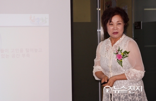[천지일보=김민아 기자] 신성희 친구랑센터장이 27일 서울 관악구 신림동 청소년도움센터 ‘친구랑’ 개소식에서 경과보고를 하고 있다.