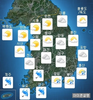 [천지일보=김예슬 기자] 28일 중부지방은 구름이 많고 제주도에는 빗방울이 떨어지는 곳이 있겠다.
