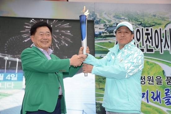 [천지일보=김미정 기자] 27일 2014 인천아시아경기대회를 밝히는 성화가 순천시청에 도착했다.