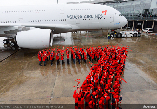 아시아나 에어버스380 1호기는 5월 말 프랑스 툴루즈에서 인수식과 인천공항에서 도입식을 가진 후 6월부터 단거리 노선인 나리타, 홍콩 노선에 운영되고 있다. 지난달 20일부터는 인천~LA노선에 차세대 항공기 A380을 매일 투입하고 있다.