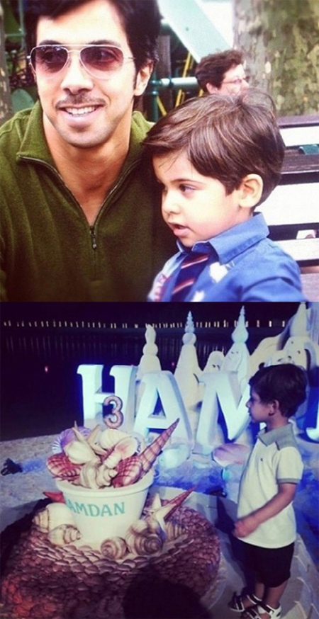 공개된 사진 속 만수르는 자신을 쏙 빼닮은 아들과 함께 환한 미소를 짓고 있다. 또 다른 사진에서 만수르의 아들은 해변가 모래사장 위에 있는 케이크를 바라보고 있다.