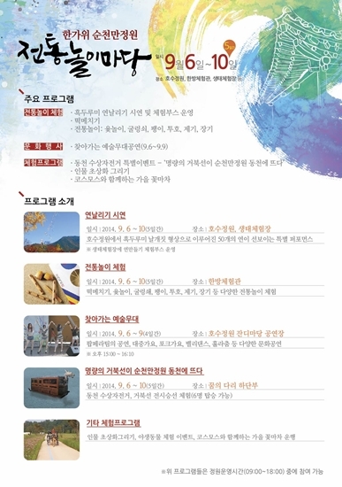 [천지일보=김미정 기자] 순천시가 5일간의 추석 황금연휴를 맞아 전통문화와 놀이를 체험할 수 있는 다양한 행사를 마련했다.