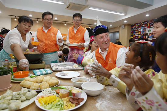 지난 1일 오후 한화케미칼 임직원 20여 명은 서울 구로구 가리봉동에 위치한 사회복지단체 ‘지구촌사랑나눔’을 찾아 다문화가정 아동들과 송편 등 우리 전통음식과 세계 각국의 명절음식을 직접 만들어보는 시간을 가졌다.