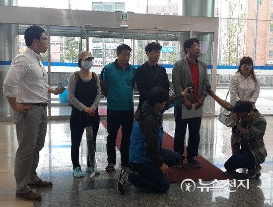[천지일보=이승연 기자] 3일 삼성전자와 삼성전자 직업병 피해자 간의 보상을 위한 7차 교섭을 앞두고 반올림에서 빠져나온 피해가족(삼성직업병 가족대책위)이 논현동 건설회관에서 공식입장을 발표하고 있다.