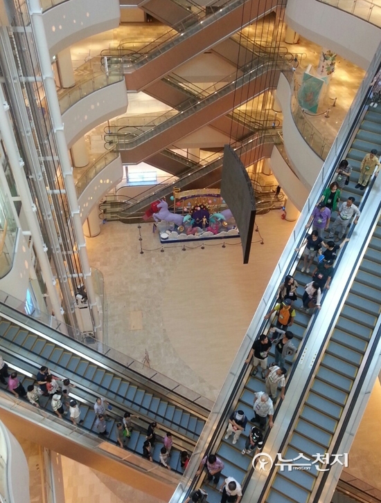 [천지일보=장수경 기자] 서울 잠실 제2롯데월드 저층부에 대한 사전 임시개장(프리오픈 Pre-Open)이 6일 열린 가운데 시민들이 공개된 구역에서 관람을 하고 있다.