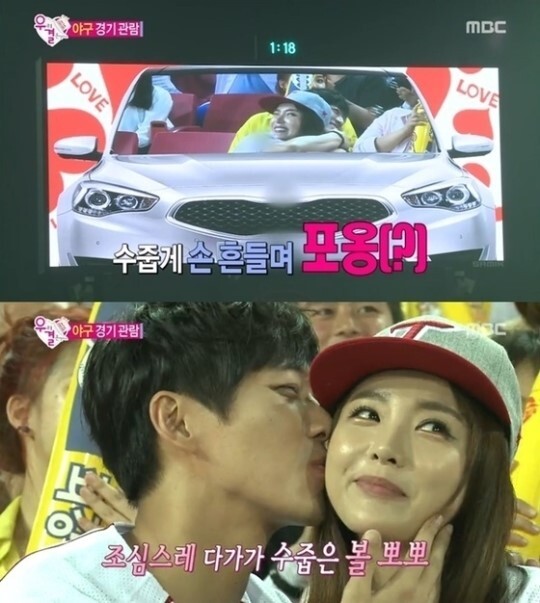 [천지일보=박혜옥 기자] ‘우리결혼했어요’ 홍진영 남궁민 가상부부가 야구장에서 볼에 뽀뽀해 관심을 끌었다.
