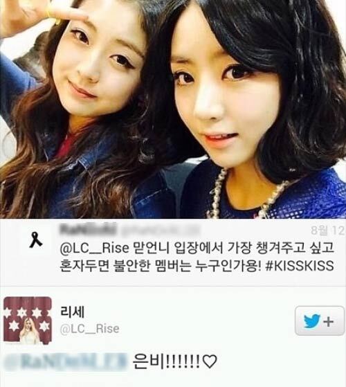 지난달 권리세는 “맏언니 입장에서 가장 챙겨주고 싶고 혼자 두면 불안한 멤버가 누구냐”는 트위터에 올라온 팬의 질문에 “은비!”라고 답해 안타까움을 더하고 있다.
