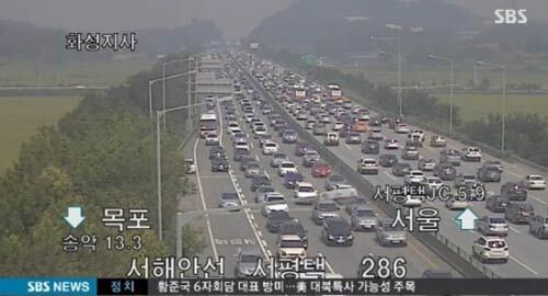 또 한국도로공사는 추석 당일인 8일 오후 4시를 전후로 정체가 최고조에 이를 것으로 예상했다.