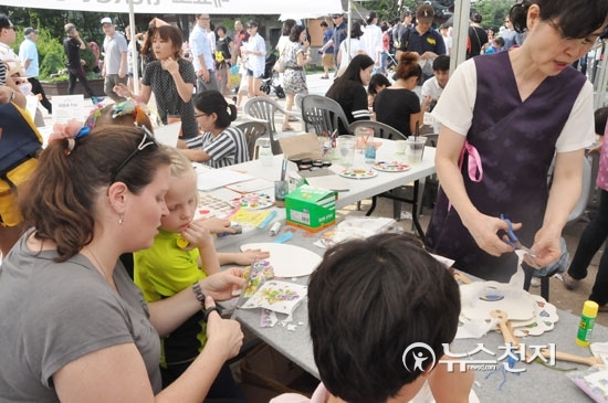 ▲ 추석을 맞아 8일 서울시가 남산골한옥마을에서 전통문화 체험과 문화 공연 등 다채로운 프로그램이 준비된 ‘오(五)대감 한가위 잔치’를 마련했다. 특히 인기를 끈 것은 탈, 연, 활, 부채 등을 직접 만들어보는 프로그램으로, 외국인들의 참여도 많았다. ⓒ천지일보(뉴스천지)