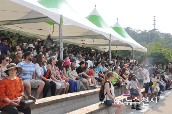 이날 어린 자녀들과 함께 나온 가족 단위 관람객은 물론 친구나 연인, 외국인 관광객 등 많은 사람들이 남산골한옥마을을 찾았다.