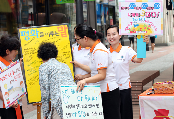 ‘평화를 말하고 평화를 나눠요’라는 주제로 열린 이번 캠페인은 외국인들도 참가해 민속놀이를 배우면서 평화의 마음을 나누는 시간을 가졌다.