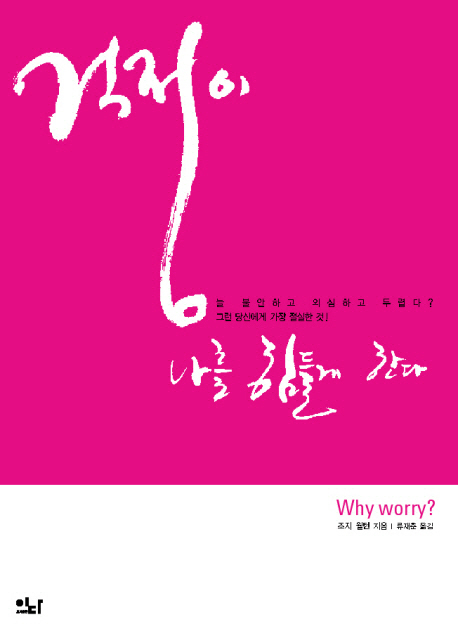 사전에는 걱정을 ‘어떤 일이 잘못될까 불안해하며 속을 태우는 것’ ‘지나치게 고민하는 상태’라고 정의한다. <걱정이 나를 힘들게 한다>는 걱정을 달고 사는 이들을 위한 심리안정제이자, 걱정으로 삶의 의욕을 잃은 당신을 위한 인생처방전이다.