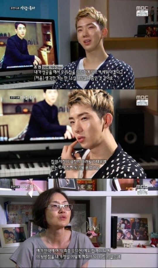 이날 방송에서 조권은 “내가 성공해서 우리 집을 당당하게 일으켜 세워야겠다 생각한 건 14, 15살 때다. 집안 사정이 어려워 독기를 품었다”고 말했다.