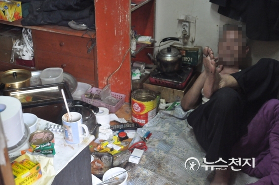 3년이 지난 현재 박 씨의 집이 어떻게 개선됐는지 살펴보기 위해 안으로 들어가 보니 이불과 베개가 다른 것으로 바뀌었다고 할 수 없을 만큼 검은 때로 얼룩져 있었다. 늘 머리 옆에 두던 낡은 버너와 주전자는 그대로였다. 방 안에는 박 씨가 먹고 방치해둔 음식물 냄새와 담배 냄새가 섞여 코끝을 찔렀다. 박 씨가 외출할 때 사용하는 넥타이만 옷걸이에 잘 정리돼 걸려 있었다.