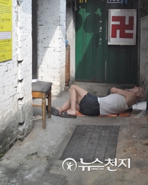 일명 ‘비둘기 할아버지’로 불리는 박승배(76) 씨가 올여름을 난 곳은 두 사람이 겨우 지나갈 수 있는 집 앞 골목 비닐 위다. 벽돌을 베개 삼아 자주 이곳에 누워 있는 박 씨에게 ‘집 놔두고 왜 여기 누워 있느냐’고 질문하면 “시원하고 편해서”라고 답할 뿐이다.