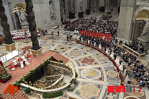 [천지일보=정현경 기자] 프란치스코 교황이 14일(현지시각) 바티칸 성베드로 대성당에서 열린 20쌍의 결혼식에서 주례를 섰다. 교황의 주례는 흔치 않은 일로, 이번 주례는 프란치스코 교황 즉위 처음이며 요한 바오로 2세가 2000년 8쌍을 맺어준 이후 14년 만이다.