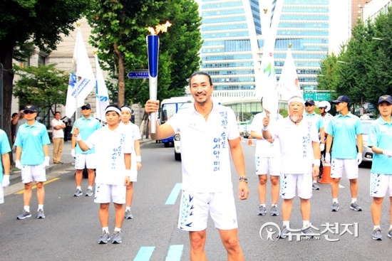 [천지일보=김현진 기자] 인천아시안게임 성화 봉송이 16일 서울에서 진행됐다.