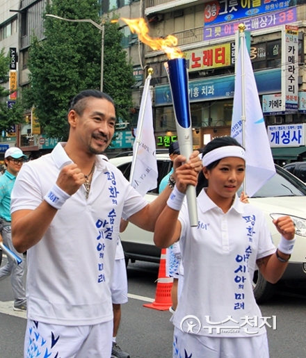 [천지일보=김현진 기자] 인천아시안게임 성화 봉송이 16일 서울에서 진행됐다.