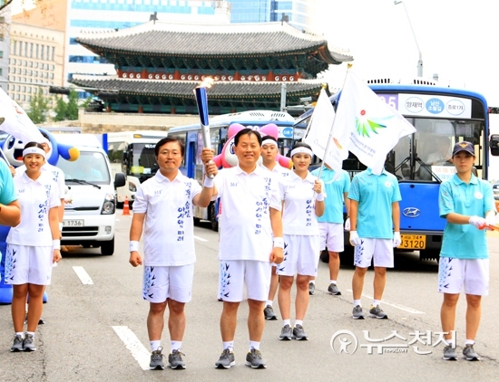 [천지일보=김현진 기자] 인천아시안게임 성화 봉송이 16일 서울에서 진행됐다.