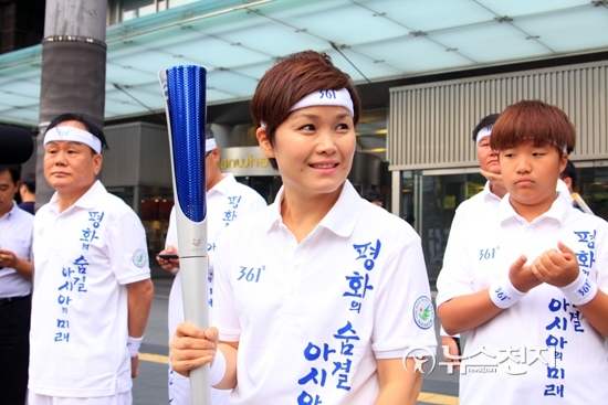 [천지일보=김현진 기자] 인천아시안게임 성화 봉송이 16일 서울에서 진행됐다.