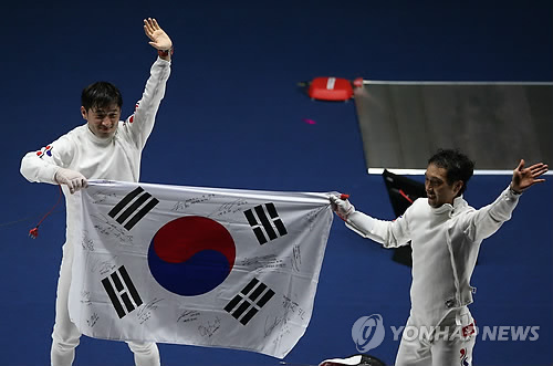 펜싱에서는 남녀 2종목 압도적인 실력으로 금메달과 은메달을 싹쓸이 했다. 여자 펜싱 사브르에서 이라진과 김지연이 준결승에서 중국 선수들을 모두 이기고 올라와 자매싸움을 벌였다. 동생 이라진은 런던올림픽 금메달리스트인 선배 김지연을 이기고 금메달의 기쁨을 누렸다. 남자 에페 역시 정진선과 박경두과 동반 결승에 올라 금메달을 놓고 다툰 끝에 정진선이 금메달의 주인공이 됐다.