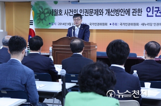 [천지일보=김민아 기자] 최원식 새정치민주연합 인권위원장이 24일 서울시 중구 국가인권위원회에서 열린 ‘세월호 사건의 인권문제와 개선방안에 관한 인권교육 토론회’에서 환영사를 하고 있다.
