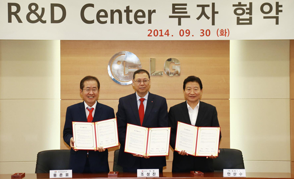 [천지일보=이승연 기자] 경남 창원공단 내 LG전자 R&D센터 건립이 확정됐다. LG전자는 30일 오전 경남 창원시 가음정동 LG전자 창원1공장에서 홍준표 경남도지사, 안상수 창원시장, 조성진 LG전자 사장 등이 참석한 가운데 R&D센터 투자 협약을 체결했다고 밝혔다.