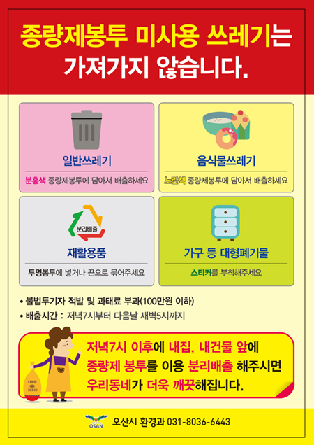 [천지일보 오산=강은주 기자] 경기 오산시가 깨끗한 거리와 쾌적한 주거환경 조성을 위해 생활 쓰레기 무단 투기 제로화에 나선다.