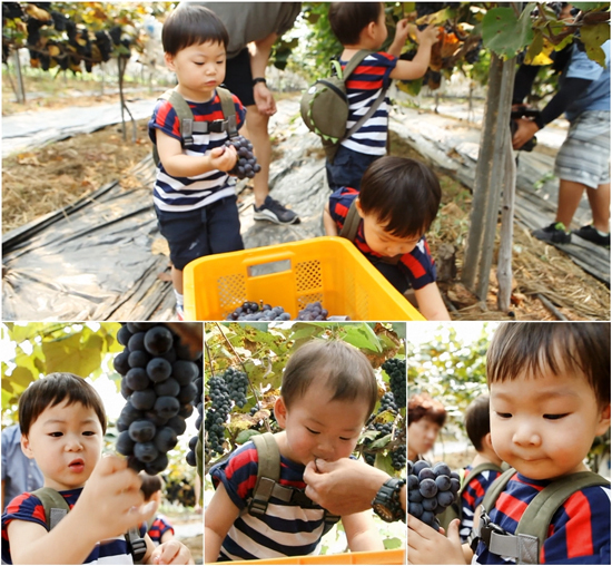 특히 이날 삼둥이는 수확한 포도를 바구니가 아닌 입으로 집어 넣는 ‘삼둥이표 수확법’으로 아빠 송일국을 당혹케 했다. ‘자유영혼’ 만세는 탐스러운 포도송이를 따는 족족 입에 넣으며 ‘먹방 수확’의 스타트를 끊었다.