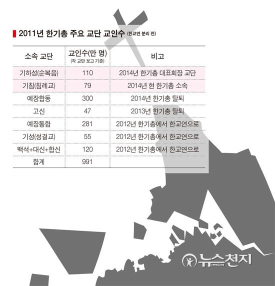 한때 보수 개신교를 대표하는 연합기구로 큰 권력을 휘둘렀던 한기총은 현재 예장통합과 예장합동 등 큰 교단들이 탈퇴하면서 명맥만 유지하고 있는 모양새다. 그간 한기총 대표회장 선거 때마다 불거졌던 금권선거 논란도 한기총의 위세를 약하게 만든 이유 중 하나로 꼽히고 있다.