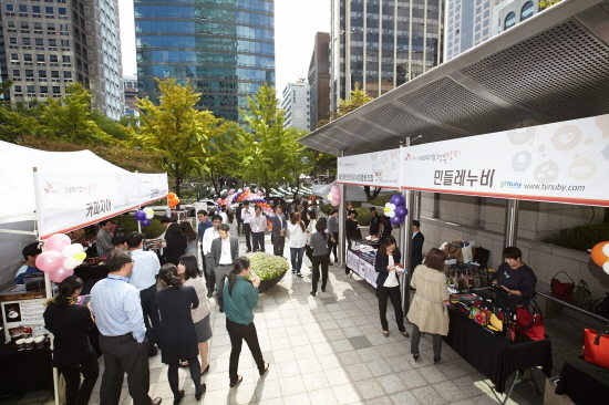 SK이노베이션이 지난 6일부터 8일까지 서울 종로구 서린동 SK사옥 앞에서 운영하는 이 장터에는 ‘고마운 손’을 비롯해 7개 사회적기업들이 참여하고 있다.