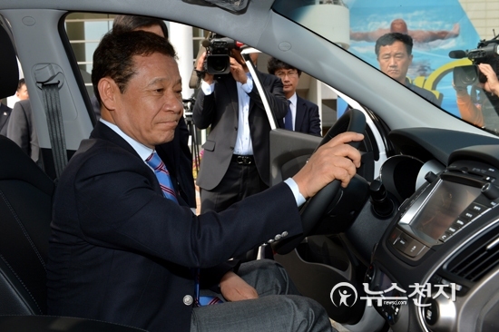 윤장현 광주시장은 8일 친환경 수소차인 현대차 투싼ix를 시승하고 수소차와 관련 산업에 대해 하나하나 세심하게 점검하는 등 친환경 수소차 산업 육성에 대한 강력한 의지와 관심을 표명했다.