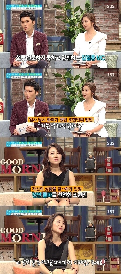 14일 오전 방송된 SBS ‘좋은 아침’에는 최연소 대기업 임원 겸 동화작가로 활동 중인 기업인 조현민 전무가 출연했다. 조 전무는 입사 당시 ‘저는 낙하산입니다’라는 발언으로 화제를 모았다.