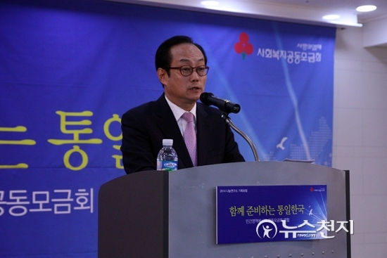 [천지일보=김민아 기자] 김영수 서강대 정치외교학과 교수가 17일 서울 중구 사회복지공동모금회 대강당에서 열린 ‘2014 나눔연구소 기획포럼, 함께 준비하는 통일 한국’에서 기조강연을 하고 있다.