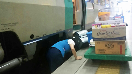 이 씨에 따르면 여승무원이 한 손엔 캐리어, 한 손엔 카트를 끄는 게 쉽지만은 않다. 열차 출발시간에 맞춰 서두르다 보면 고객이 구입해야 할 물건이 파손되기도 한다. 물건을 싣다가 쏟아질 경우 선로로 내려가 수습하는 것도 이들 혼자 감당해야 할 몫이다. 물건이 바퀴에 끼거나 열차가 승무원을 못 보고 출발할 경우에는 얼마든지 인명사고로 이어질 수도 있는 상황. 이 씨가 틈틈이 1인 시위를 하고 있는 이유 중 하나다.
