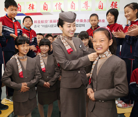 아시아나항공은 쑤저우시에 위치한 완핑학교 분교에 멀티미디어세트 10개, 칠판 10개, 피아노 1대 등을 전달하고, 승무원을 꿈꾸는 학생을 대상으로 직업특강을 실시했다.